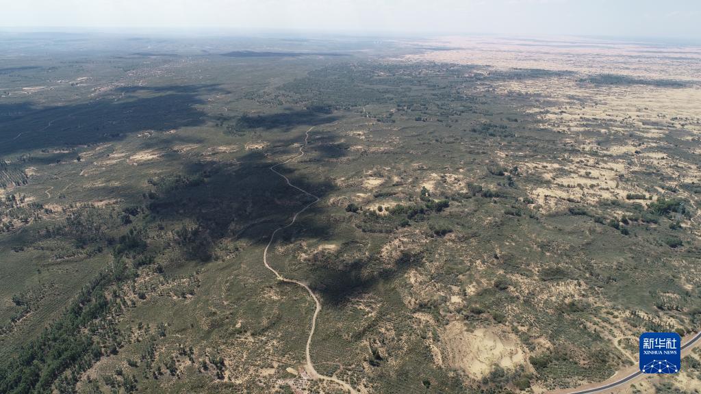 這是8月24日拍攝的庫布其沙漠腹地銀肯沙項目區(無人機照片)。