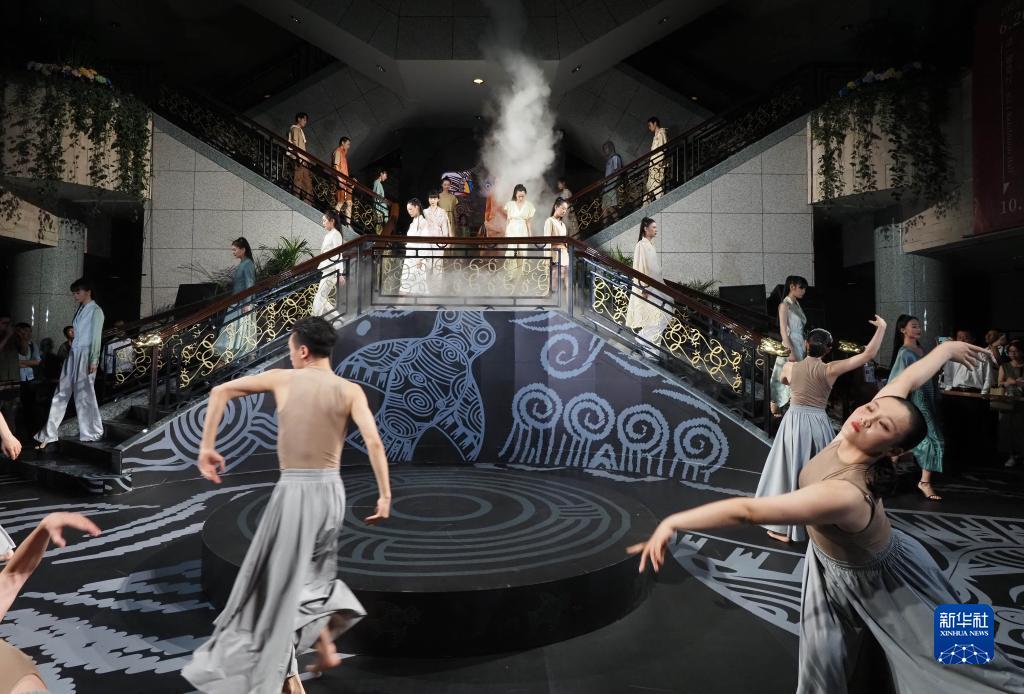 8月25日晚,演員在上博“研色·良渚之夜”綜合藝術秀上表演現代舞。新華社記者 任瓏 攝