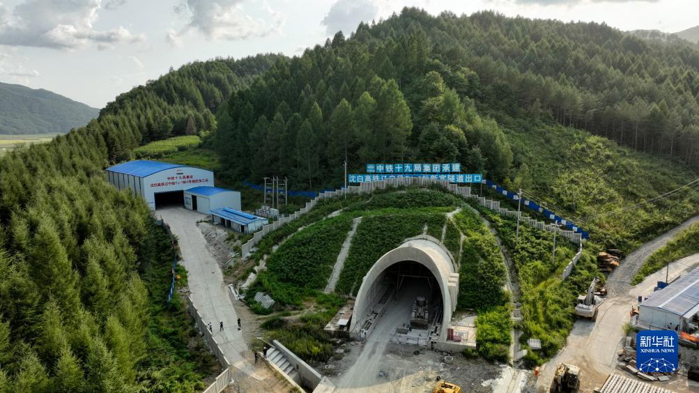 8月25日拍攝的沈白高鐵新賓隧道出口(無人機照片)。