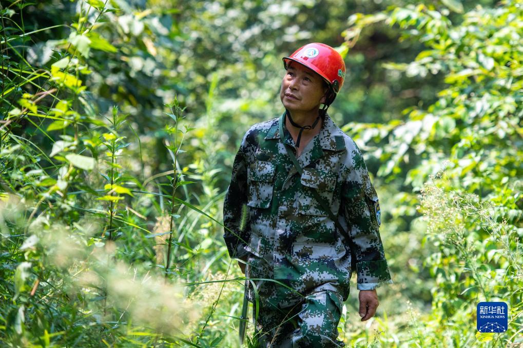8月24日,在瀏陽市金剛鎮平灣村,黃蔚谷在巡山。