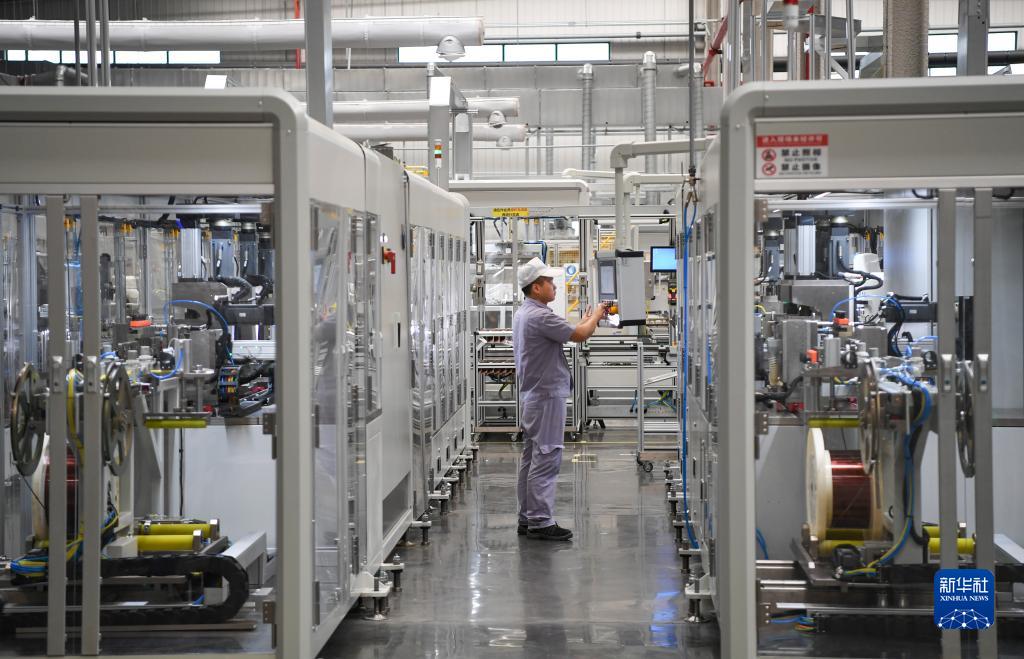 8月24日,工人在西部(重慶)科學城金康動力電機定轉子生産車間作業。