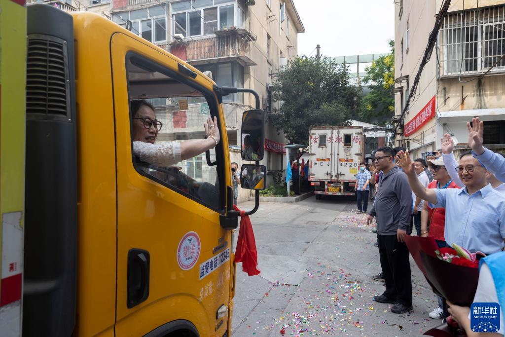 8月26日,居民簇擁在路邊為長橋新村片區舊城區改建項目搬場居民送行。