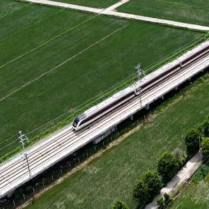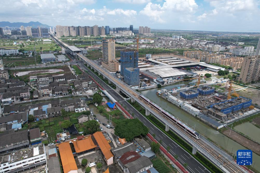 8月26日,溫州軌道交通S2線列車行駛在瑞安市路段(無人機照片)。