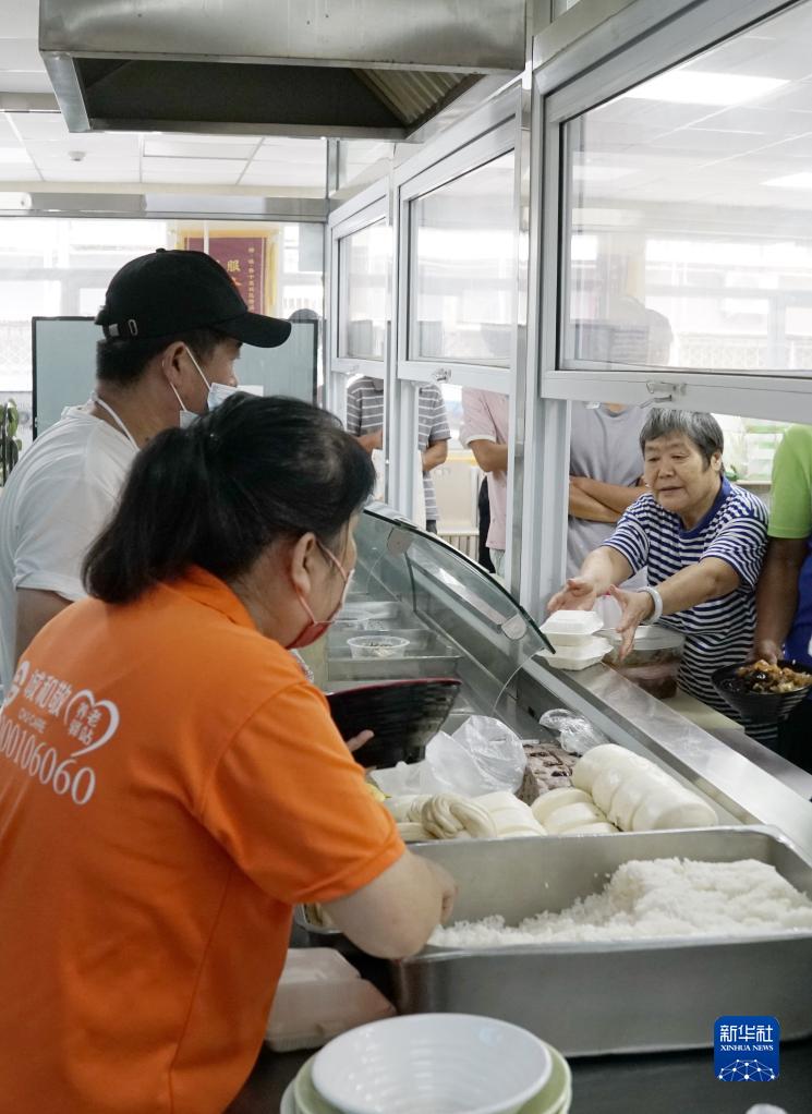 8月26日,十里堡社區的老年人在老年餐廳購買午飯。