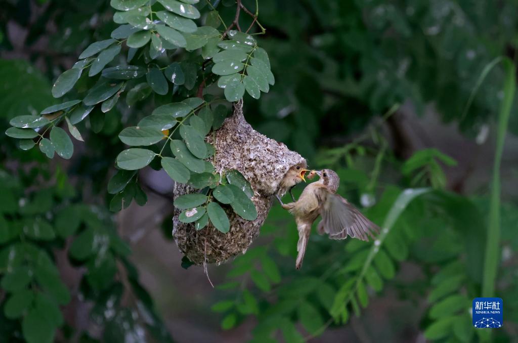 近日,被譽為“鳥類建築師”的中華攀雀在河北省唐山市豐南區沿海濕地開始育雛,成鳥在樹林中飛舞着撲捉昆蟲、幼鳥小心翼翼地將頭探出巢穴等待成鳥歸來的場景,形成一幅和諧美麗的自然畫卷。
