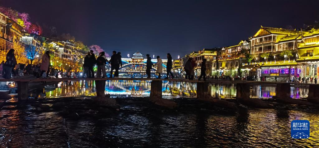 湖南省湘西土家族苗族自治州鳳凰古城持續推進旅游環境提質升級,規範旅游市場,完善旅游服務設施。每到夜晚,鳳凰古城沱江兩岸燈光璀璨,美景如畫,吸引眾多游客前來感受“夜鳳凰”的獨特魅力。