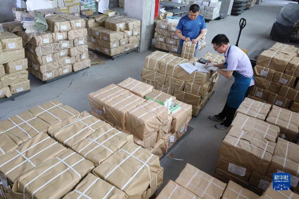 8月26日,河南省焦作市溫縣新華書店工作人員在清點整理新教材。