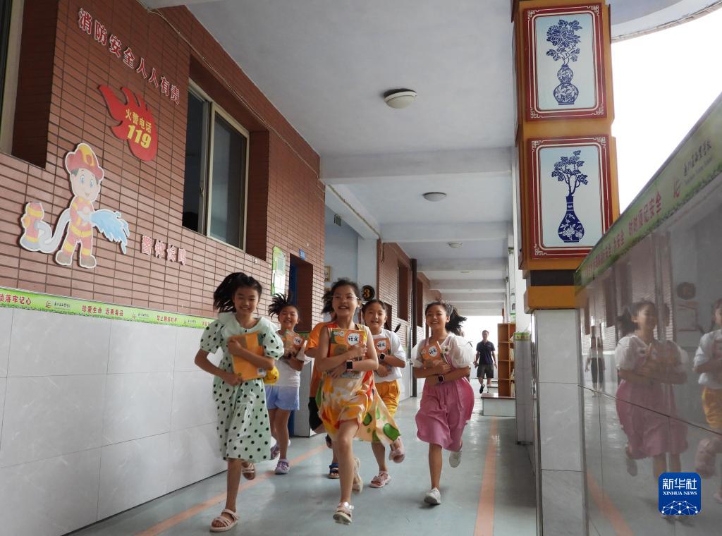 8月25日,四川省達州市通川區鳳西街道西罡學校,學生拿到發放的新課本。