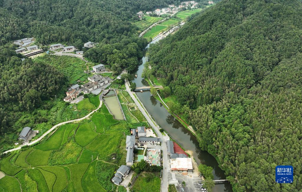 江西省靖安縣璪都鎮港背村(8月24日攝,無人機照片)。
