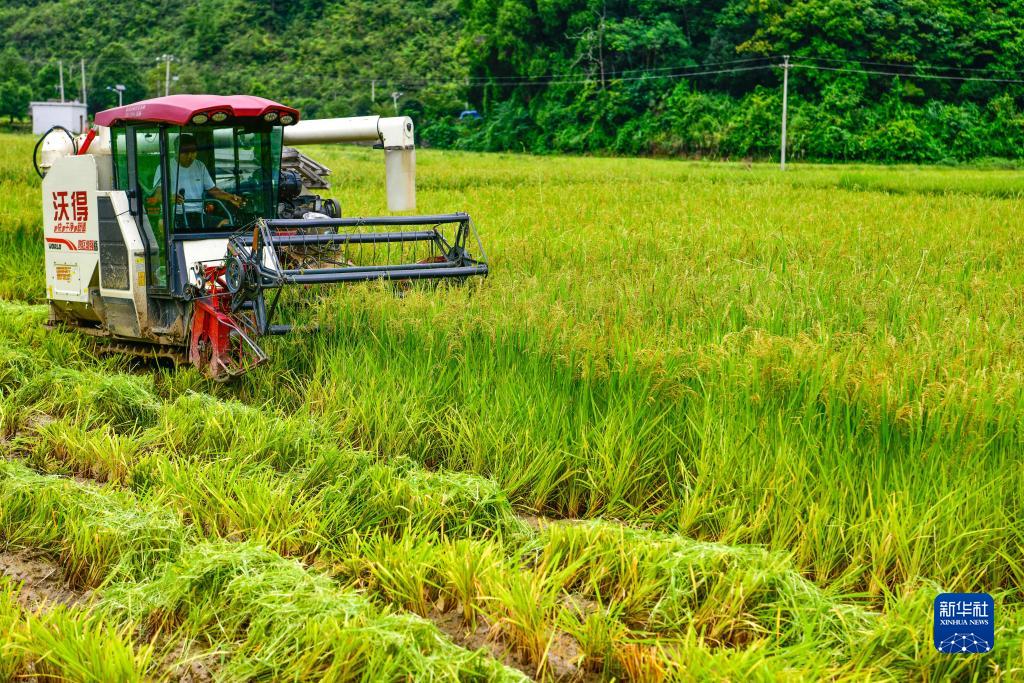 8月26日,農機手駕駛收割機在貴州省岑鞏縣羊橋土家族鄉祝壩村收割制種水稻。