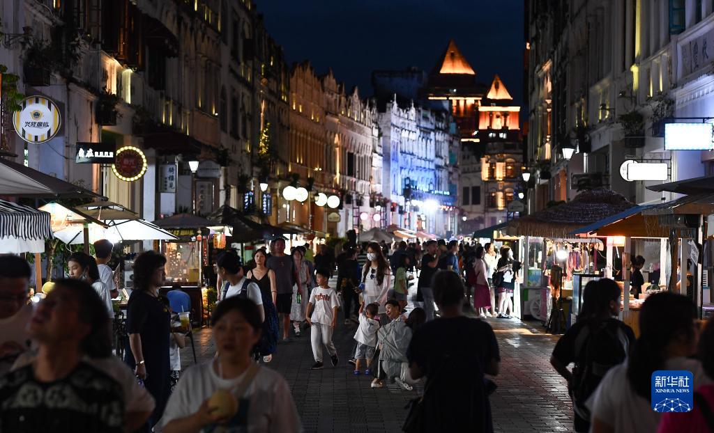 游客在海口騎樓老街參觀游玩(8月21日攝)。