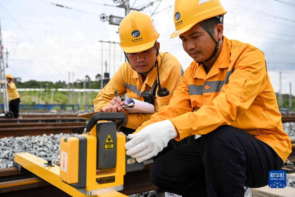8月27日,中國鐵路南寧局集團有限公司南寧供電段的接觸網工在操作激光接觸網檢測儀。