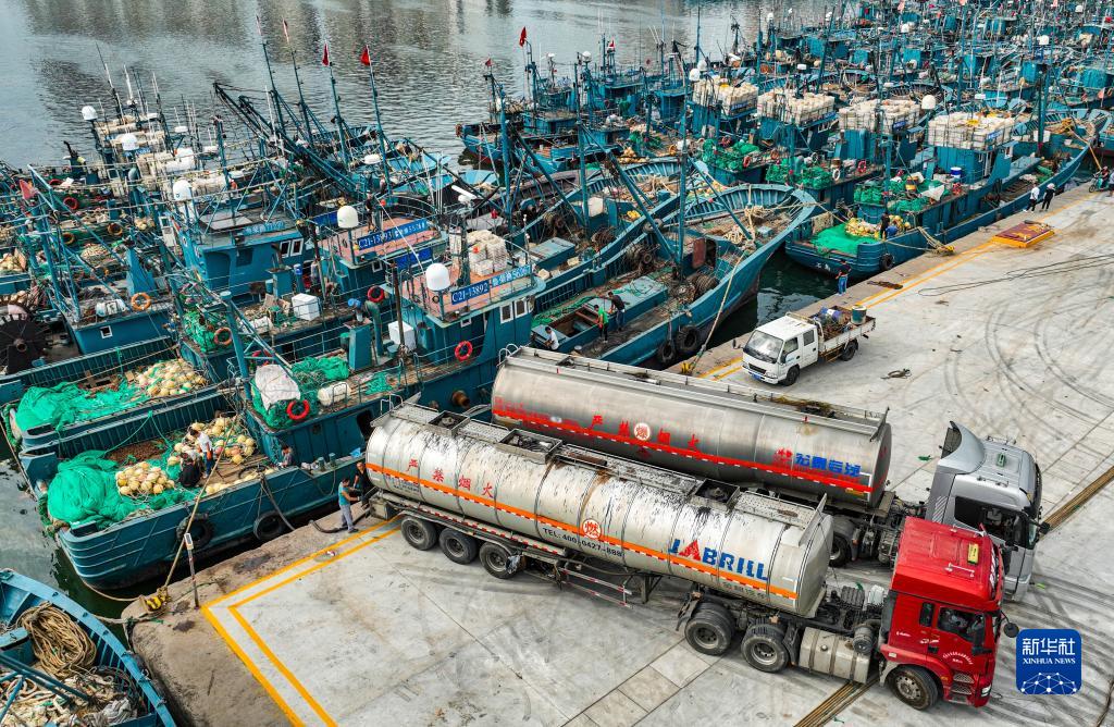 連日來,在山東省榮成市石島漁港碼頭,漁民們忙着檢修漁船、修補漁網、添置各種漁具、加油加冰,為開海秋捕做準備。