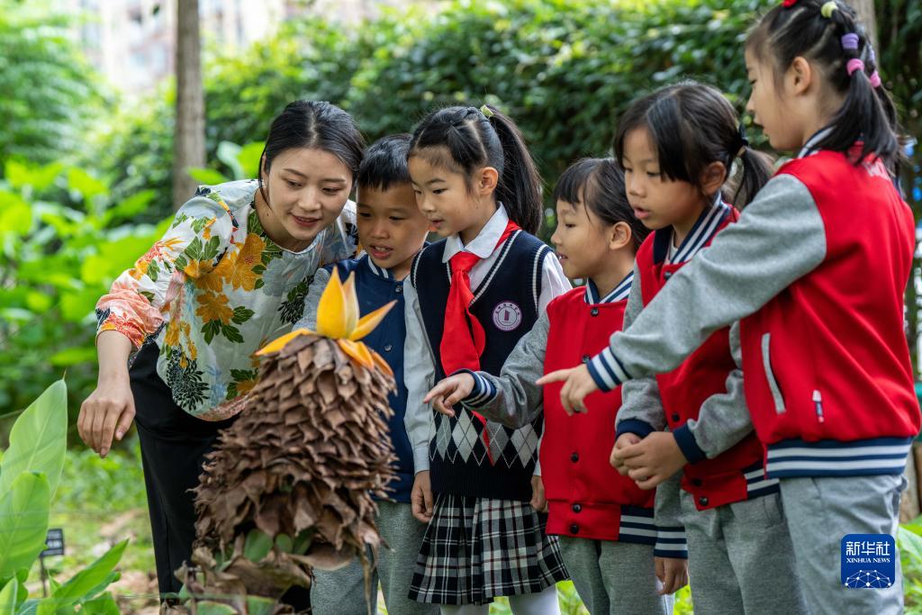 8月27日,雲南省昆明市潤城學校的老師帶着學生參觀生物多樣性科普宣傳示範基地。