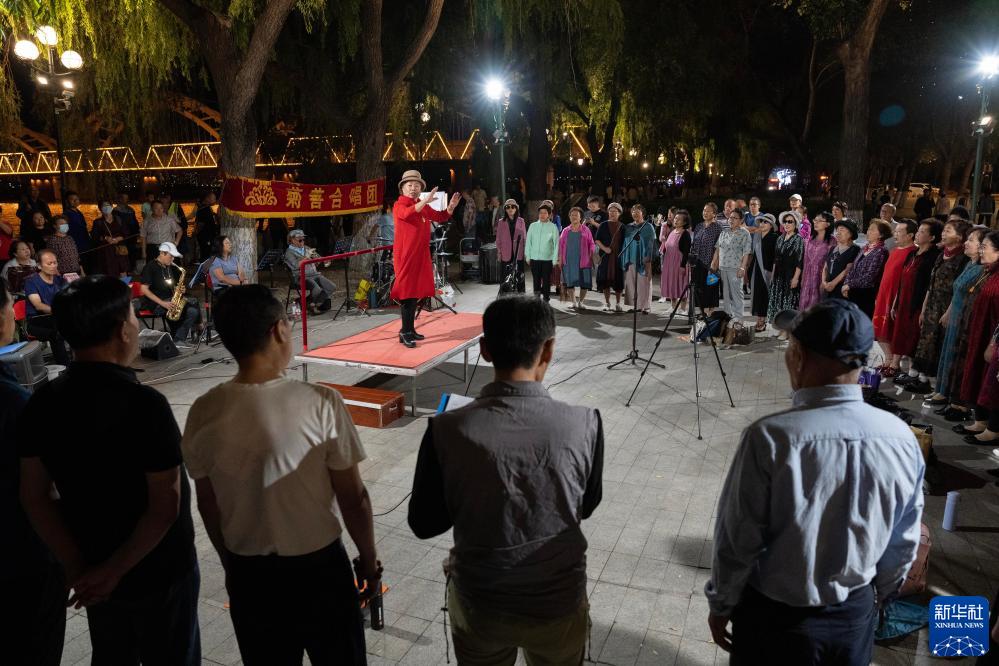 8月27日,合唱團在松花江哈爾濱段江畔的斯大林公園內唱歌。