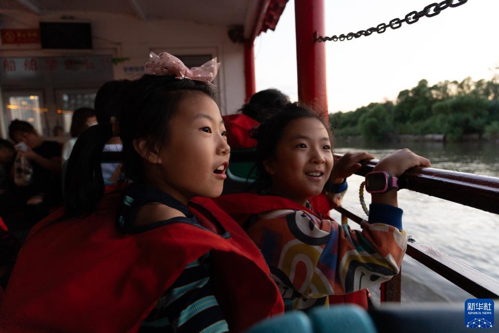 8月27日,游客乘船在松花江哈爾濱段游玩賞景。