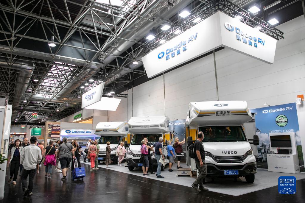 8月28日,人們在德國杜塞爾多夫國際房車展上參觀中國戴德房車展&。
