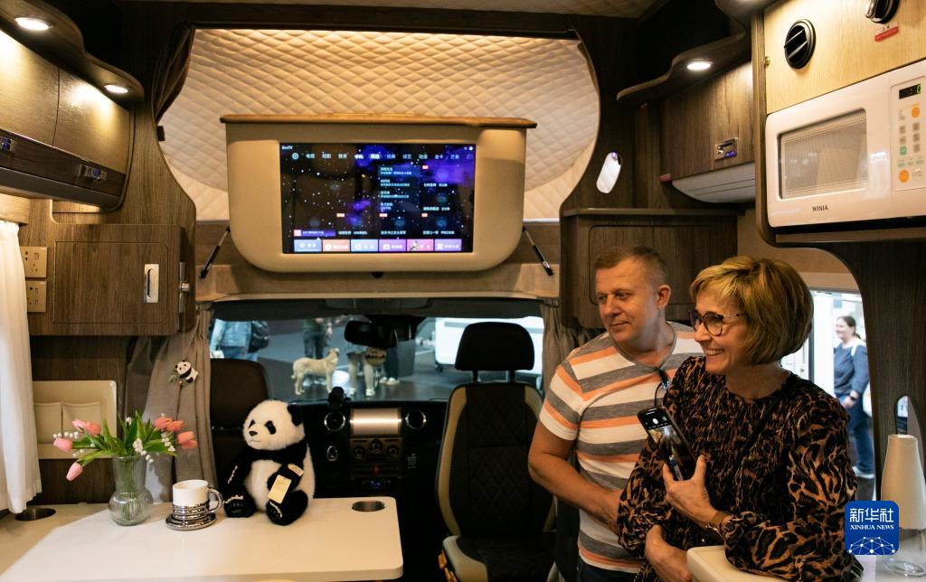 8月28日,人們在德國杜塞爾多夫國際房車展上參觀來自中國的戴德房車。