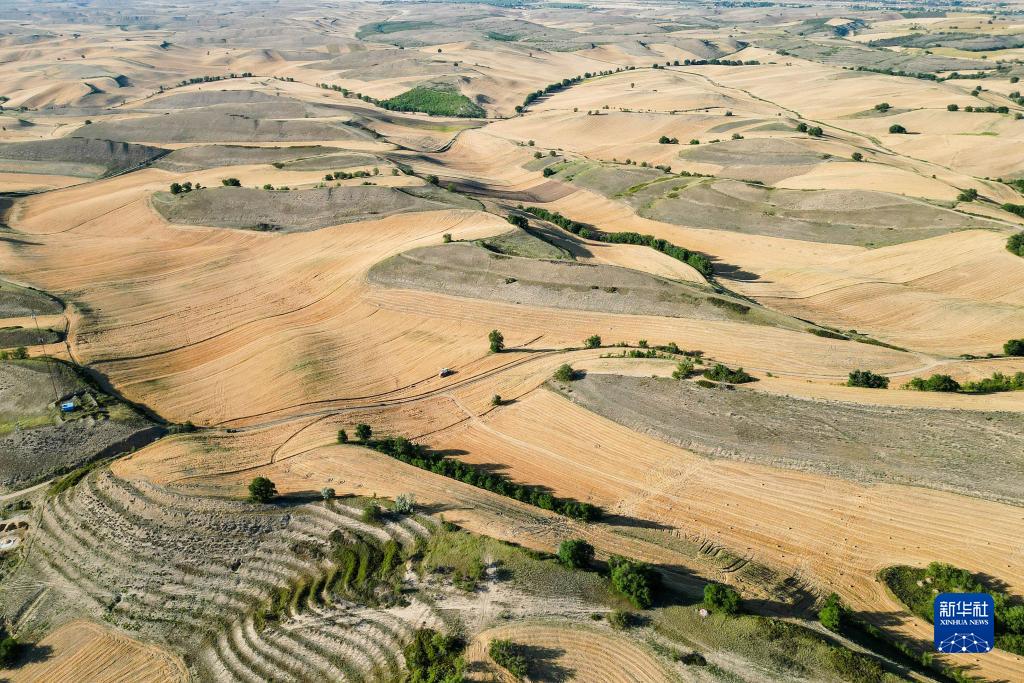 新疆昌吉回族自治州木壘哈薩克自治縣的麥田(7月23日攝,無人機照片)。