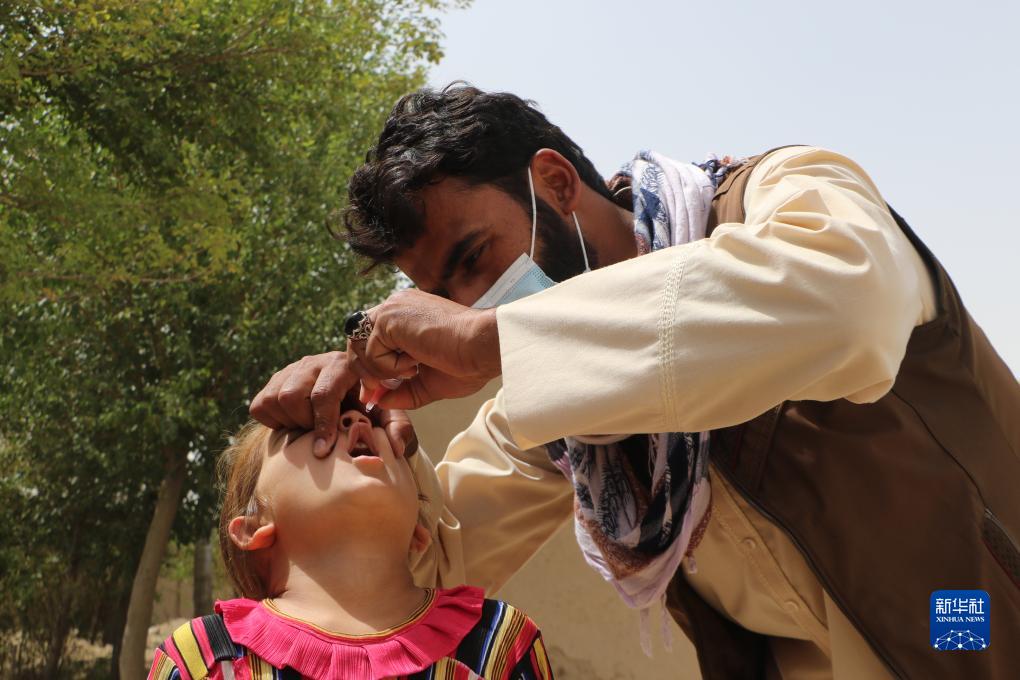 8月29日,一名醫務人員在阿富汗朱茲詹省為一名兒童接種脊髓灰質炎疫苗。