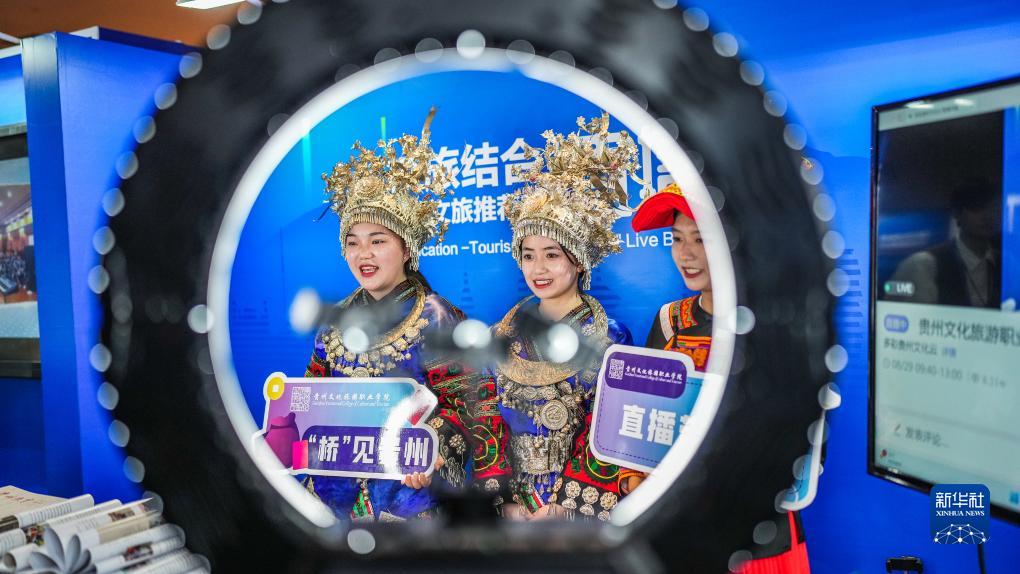 8月29日,貴州文化旅游職業學院學生在交流周活動上進行直播。