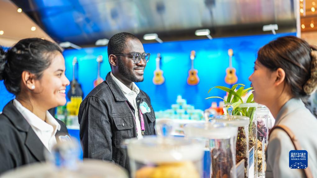 8月29日,國際留學生在交流周活動上和參會人員交流。