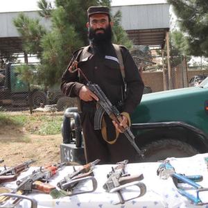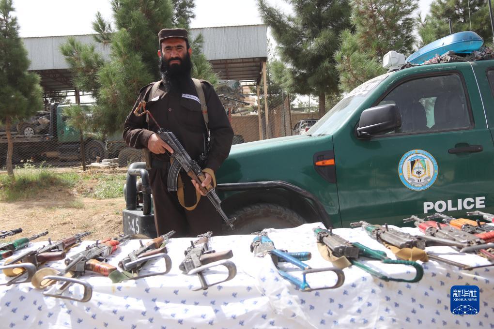 這是8月29日在阿富汗巴爾赫省拍攝的被阿富汗安全部隊收繳的武器。