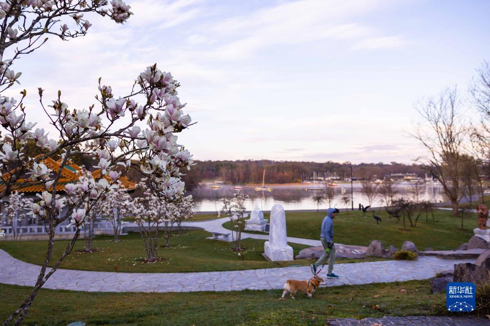 8月30日,游客牽着寵物狗在澳大利亞堪培拉的北京花園散步。