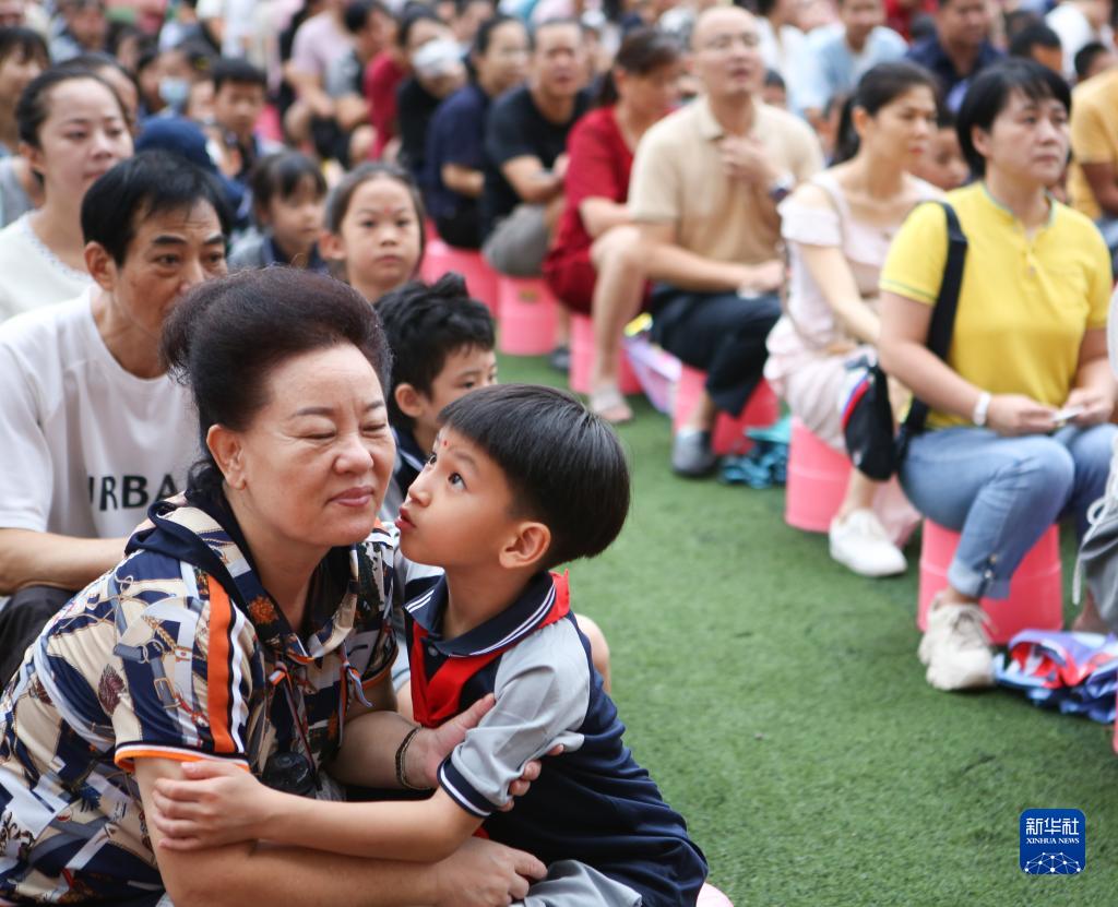 8月30日,海口市玉沙實驗學校的一年級新生和家長在“開筆禮”儀式活動現場。