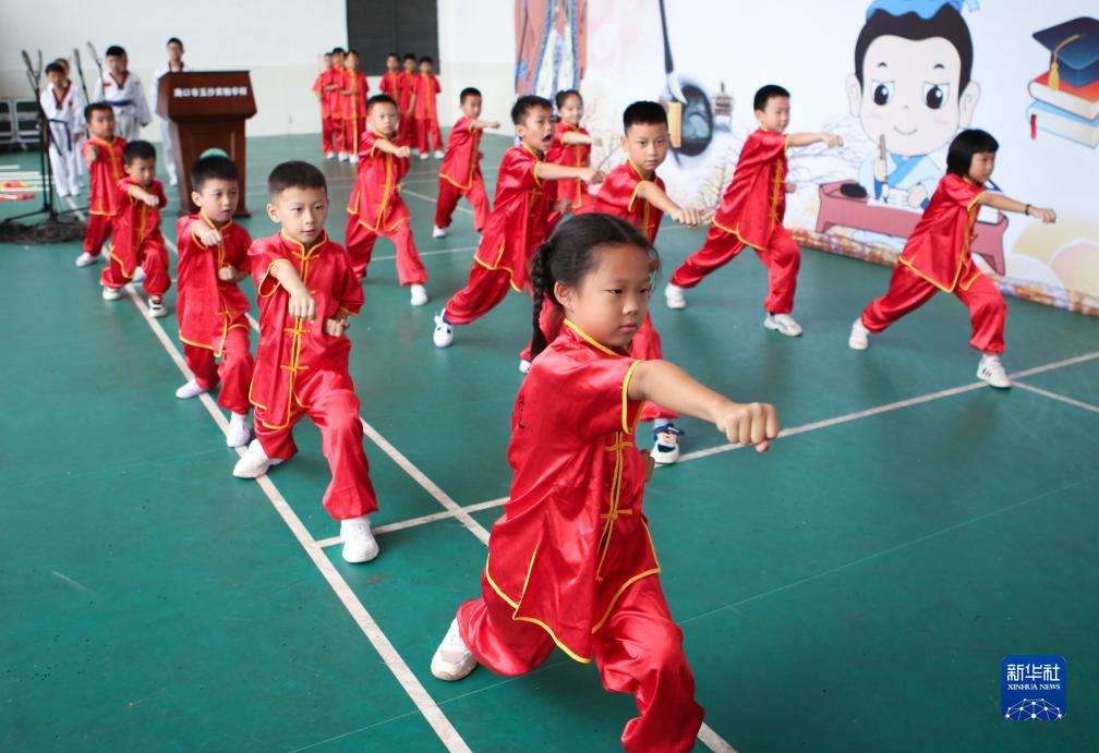 8月30日,海口市玉沙實驗學校的武術隊在“開筆禮”儀式活動現場表演。