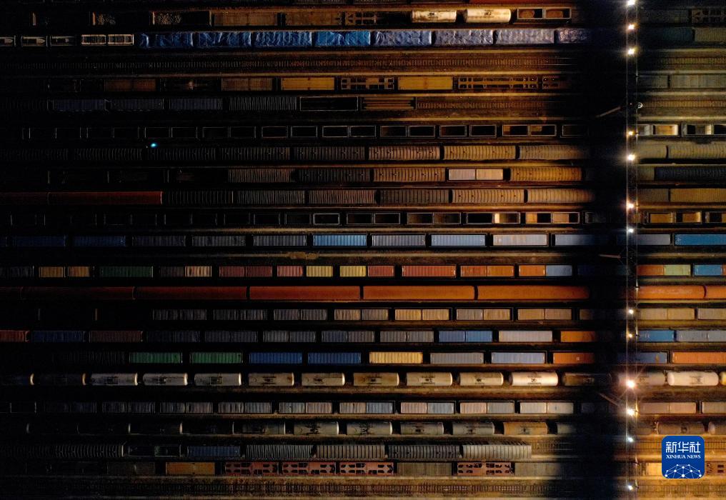 8月29日晚拍攝的投光燈照耀下的鄭州北站編組場(無人機照片)。
