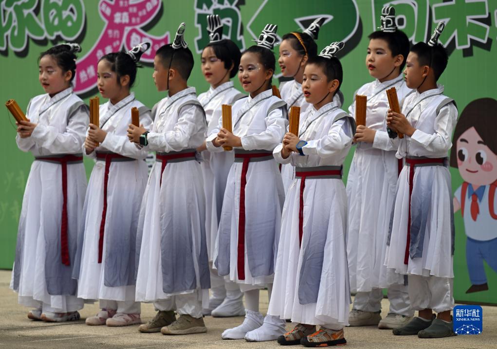 8月30日,在安徽省合肥市屯溪路小學,學生表演誦讀《千字文》,體驗傳統文化,迎接新學期。