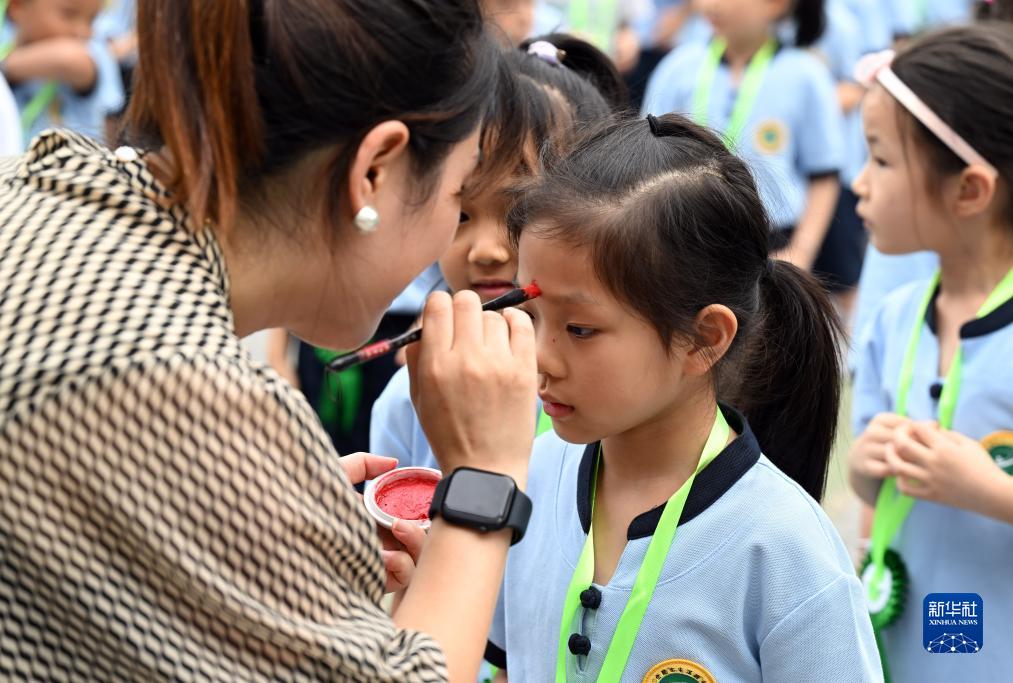 8月30日,在安徽省合肥市屯溪路小學,老師為一年級新生點硃砂啟智,讓孩子體驗傳統文化,迎接新學期。