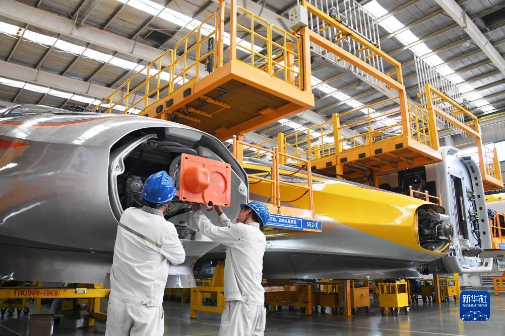 8月29日,中車青島四方總裝車間工作人員在復興號智能動車組生産線上進行裝配作業。