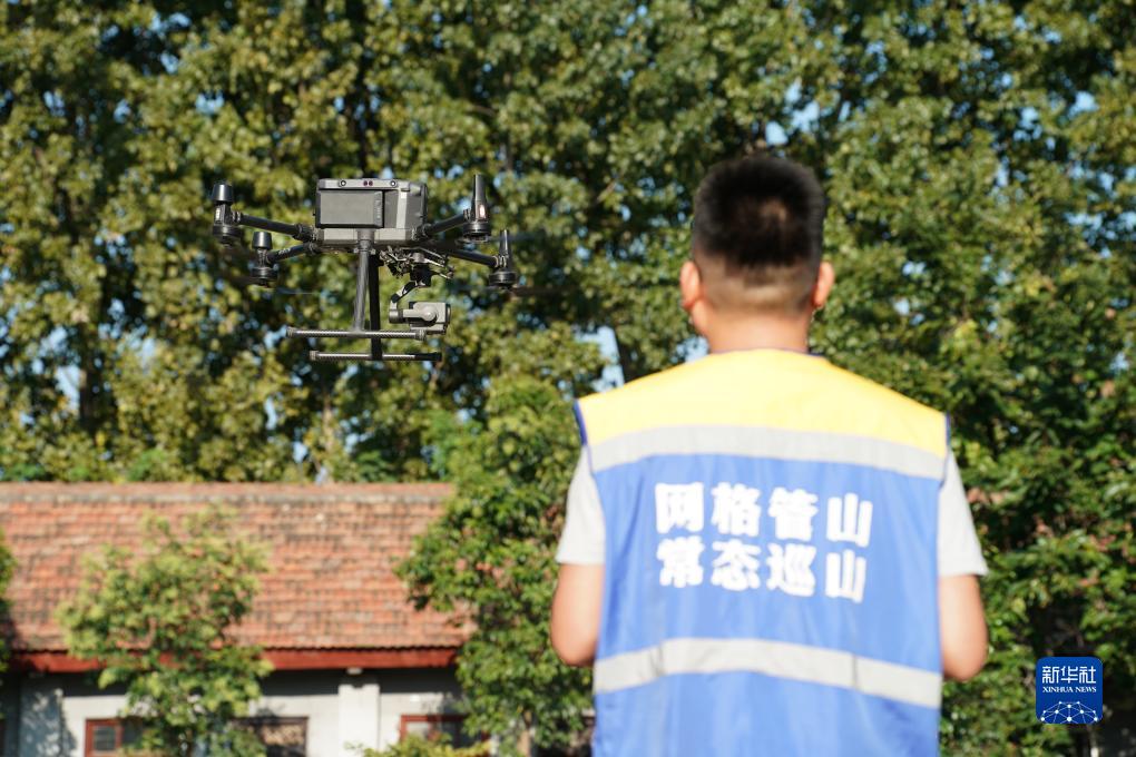 8月29日,西安市長安區灃峪國有生態林場的工作人員操縱無人機巡山。