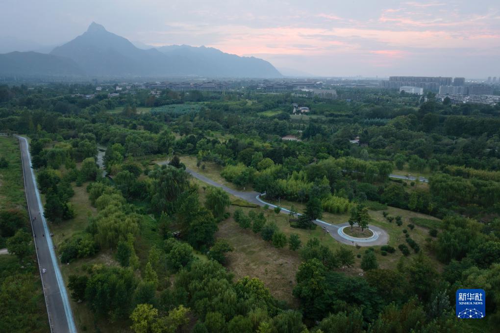 位於西安市長安區秦嶺北麓的秦嶺和諧森林公園(8月16日攝,無人機照片)。