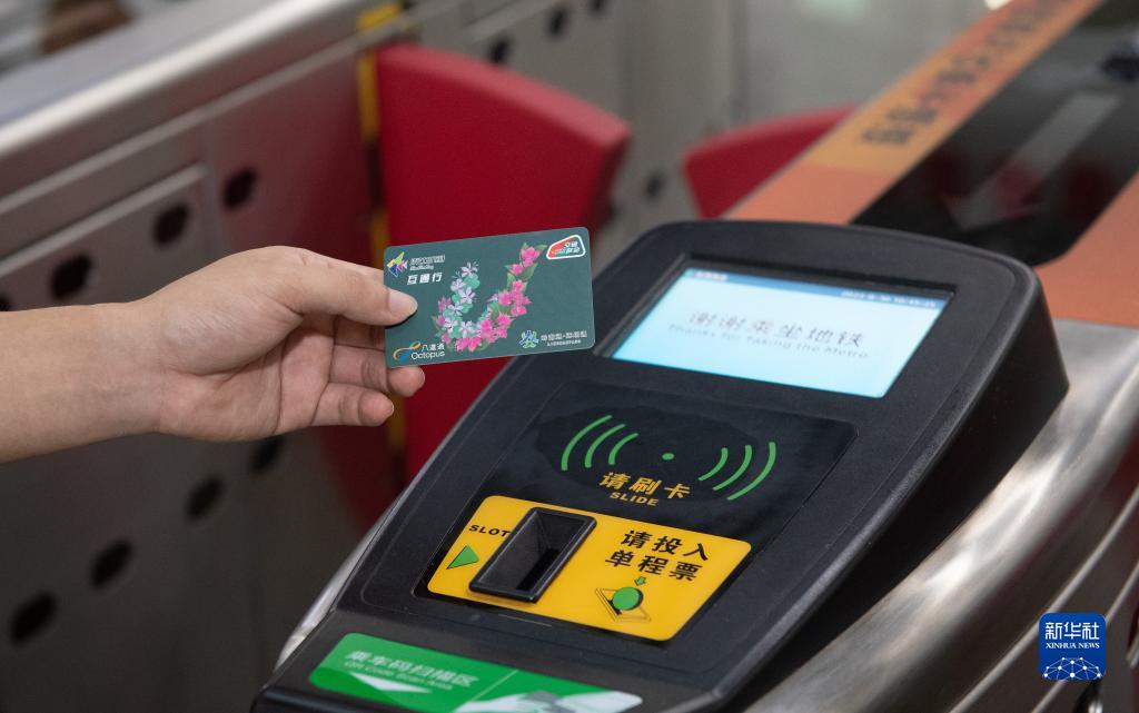 8月30日,在深圳福田站地鐵閘機出口,用戶持深港互通行卡準備刷卡。