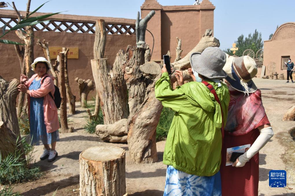 8月30日,游客在位於新疆吐魯番市的坎兒井樂園景區拍照留念。