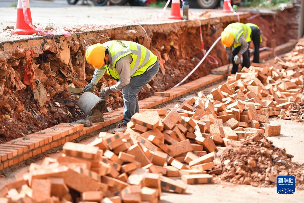 8月30日,在湖南省岳陽市平江縣金盾小區,工人在砌墻。