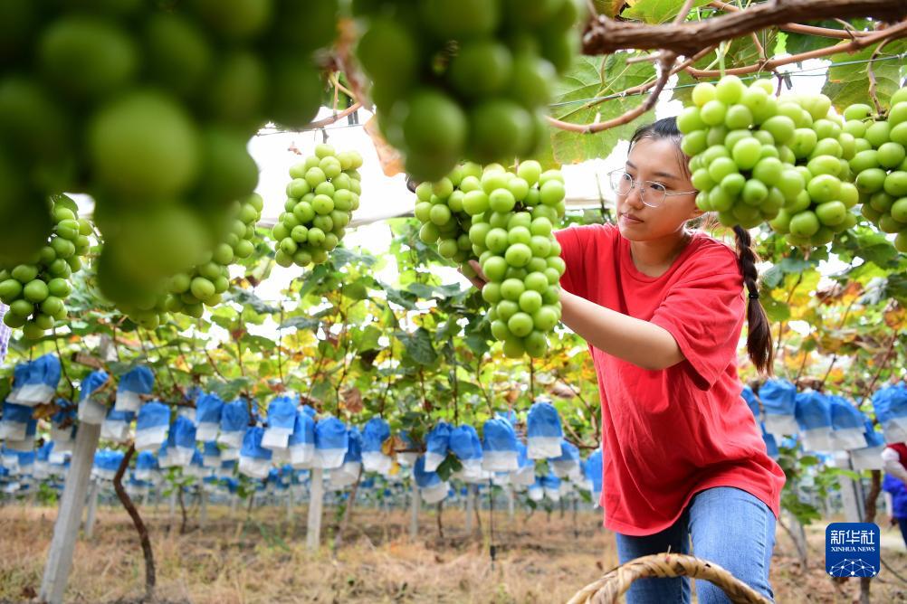金秋時節,潘雅潔家的60多畝陽光玫瑰葡萄喜獲豐收,潘雅潔除了進行日常管理、採摘、銷售外,還發揮特長,在田間地頭直播推介自家的葡萄。潘雅潔説,做農業很辛苦,要耐得住寂寞,看著豐收的場景,一切付出都值得。