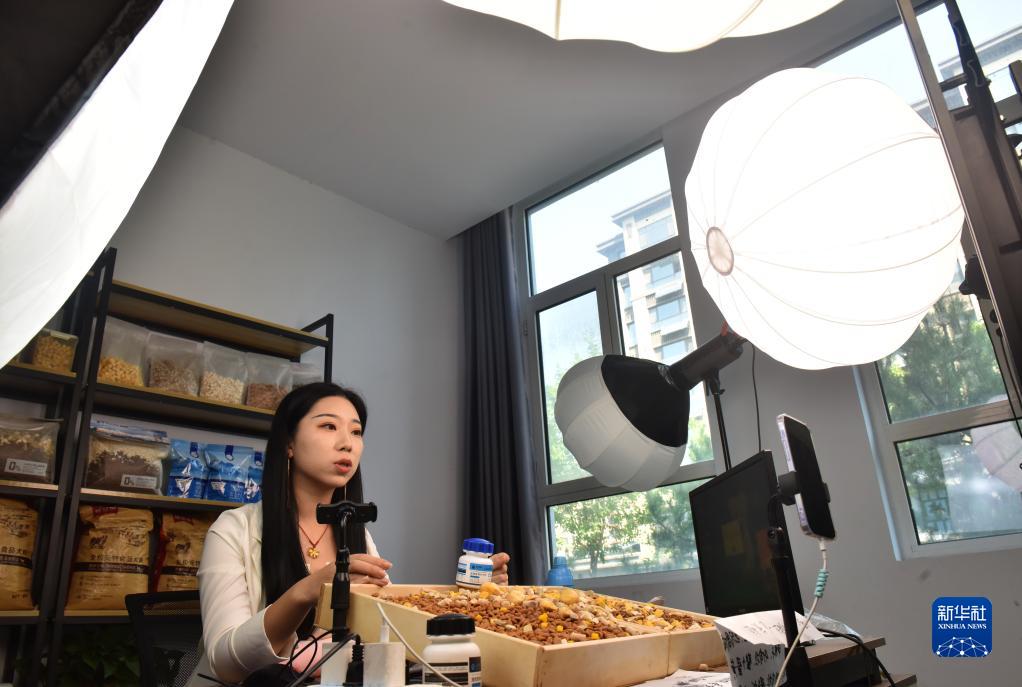 8月30日,河北省邢&市南和區和陽鎮一家寵物用品生産企業工作人員通過網絡直播銷售産品。