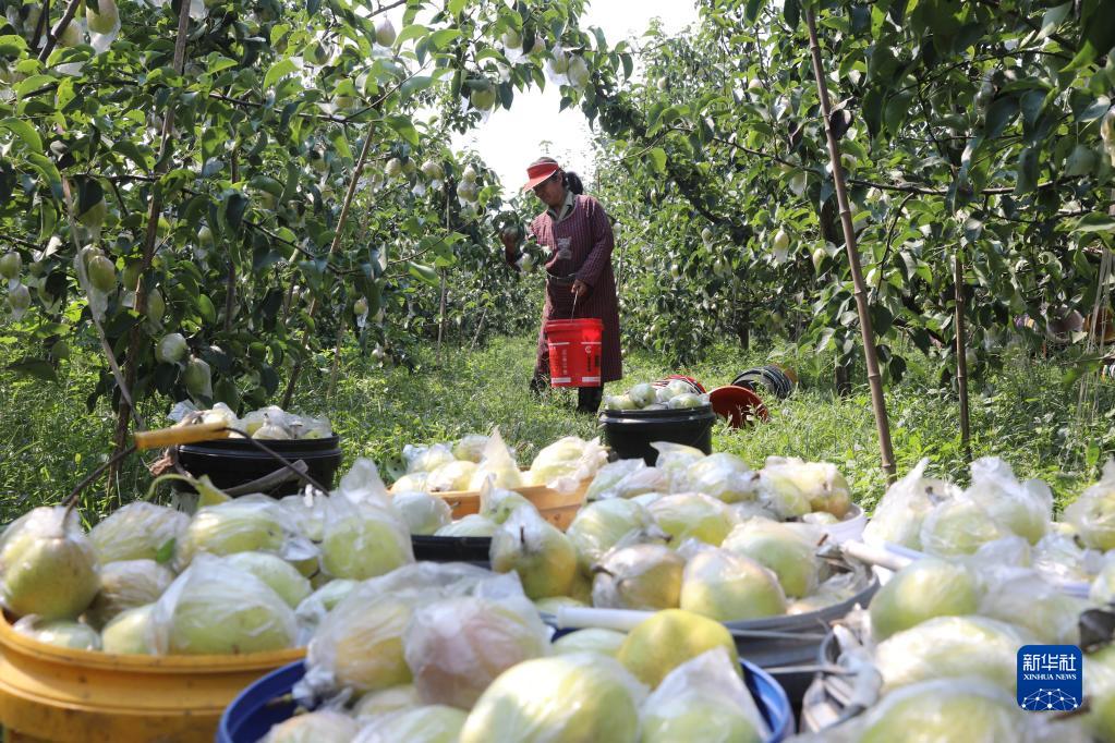 8月30日,果農在河南省焦作市溫縣番田鎮王太保村采收酥梨。