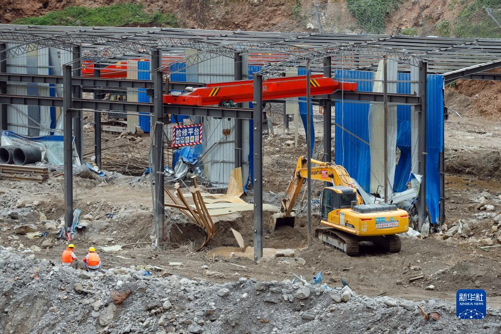 8月30日,救援人員在位於金陽縣境內蘆稿林河下游的蜀道集團沿江高速JN1(金寧一)標段項目部鋼筋加工場民工駐地附近實施救援。