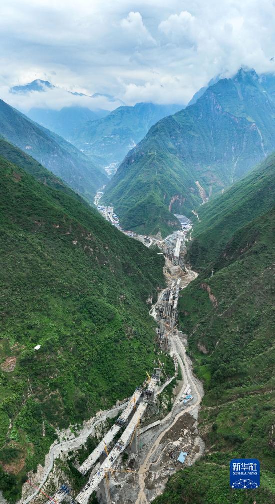 8月30日拍攝的位於金陽縣境內蘆稿林河下游的蜀道集團沿江高速JN1(金寧一)標段項目部鋼筋加工場民工駐地板房(右下)已被山洪沖毀(無人機照片)。