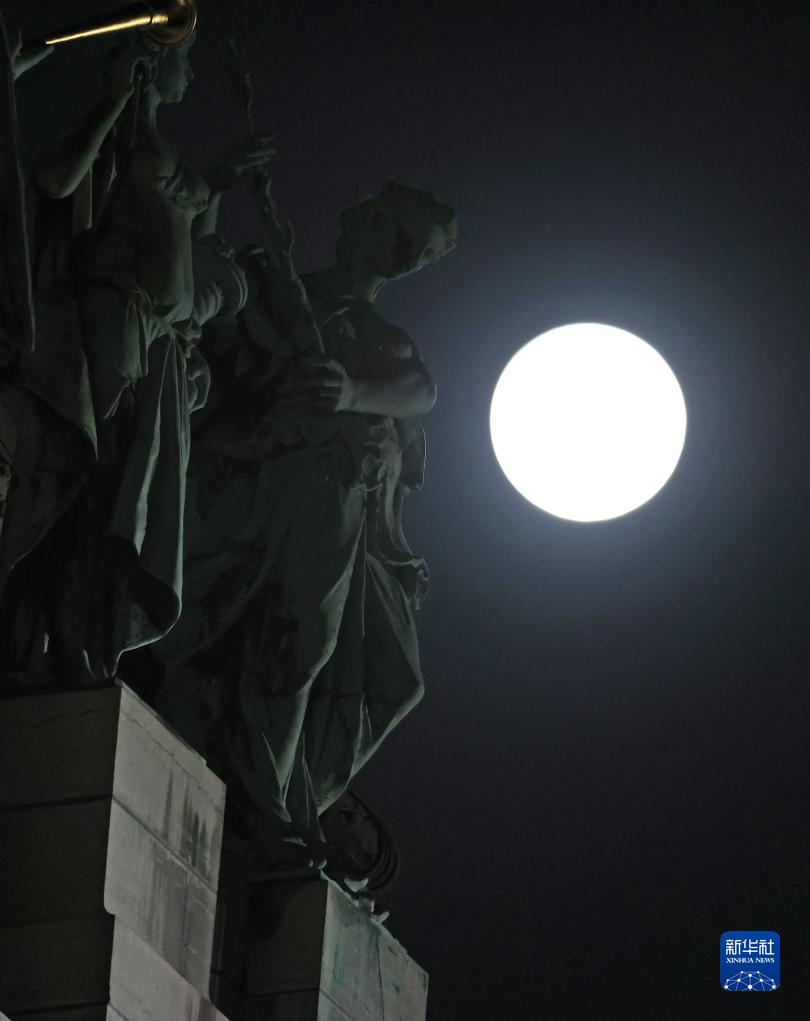 這是8月31日在比利時首都布魯塞爾拍攝的“超級月亮”。