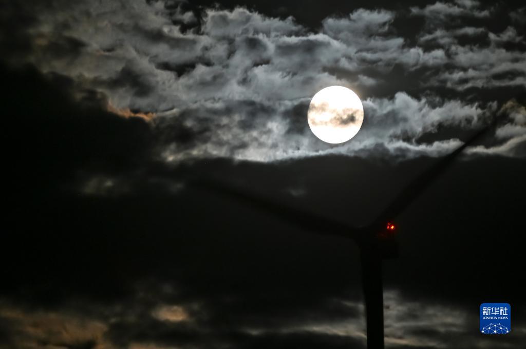 這是8月30日在北馬其頓斯科普裏附近拍攝的“超級月亮”。