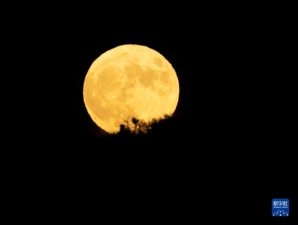 這是8月30日在美國舊金山金門大橋附近拍攝的“超級月亮”。