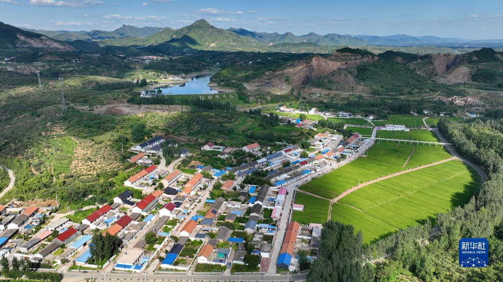 河北唐山遷安市樓子山村內的百畝稻田。該村打造精品大米生産基地,並建設稻香小鎮(8月29日攝,無人機照片)。