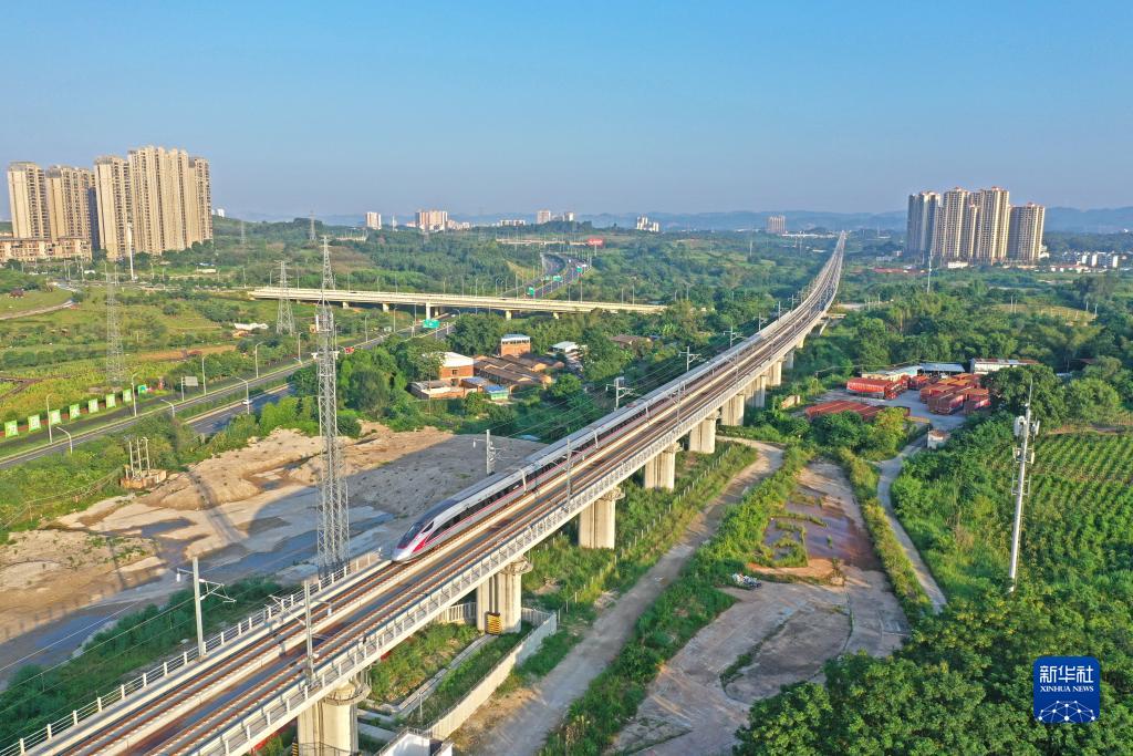 這是8月31日在廣西南寧市拍攝的由南寧東開往貴陽北的G4308次列車(無人機照片)。