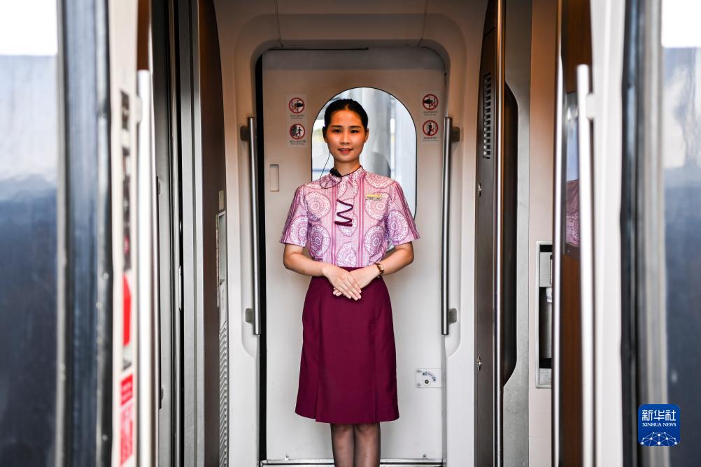 8月31日,工作人員在由南寧東開往貴陽北的G4308次列車上等候乘客上車。
